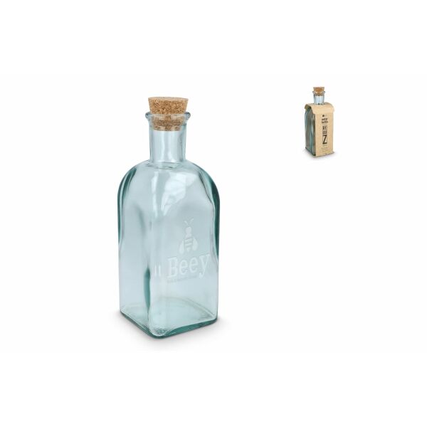 - InSideOut Vierkante Gerecycled glas Waterfles ReuuZ met kurkstop 500ml